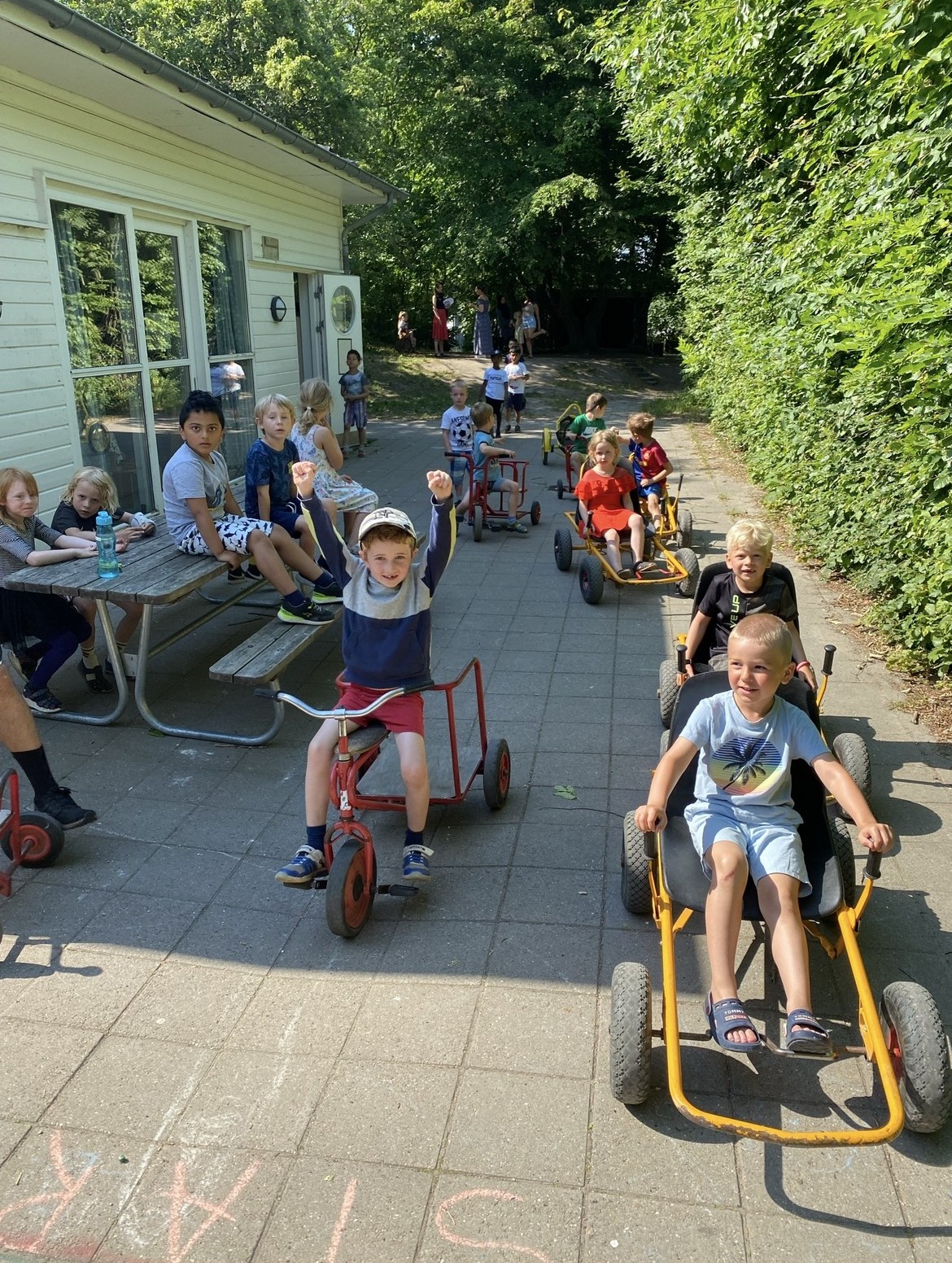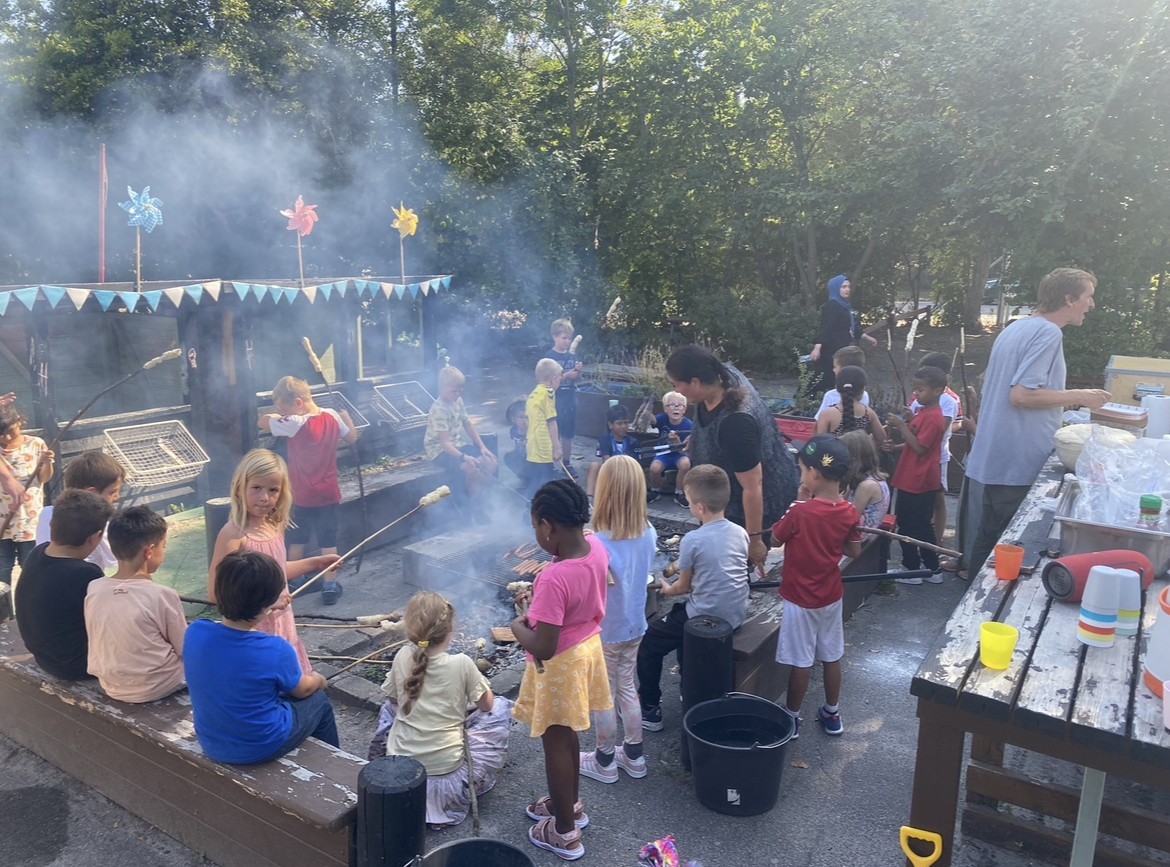 Vores store, grønne udearealer giver særlige muligheder for både bevægelse, leg og fordybelse – noget der er helt særligt i en københavnskontekst. Her er plads til både fælles aktiviteter og mindre legefællesskaber, hvor børnene kan finde deres egen måde at deltage på.
